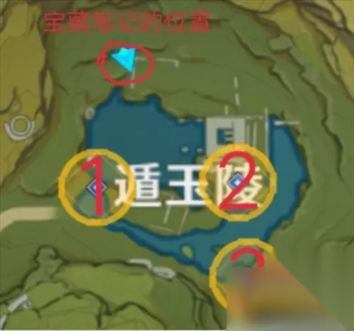 如图所示,宝藏就在遁玉陵里。 根据宝藏图所示的位置我们找到了几本笔记,如下