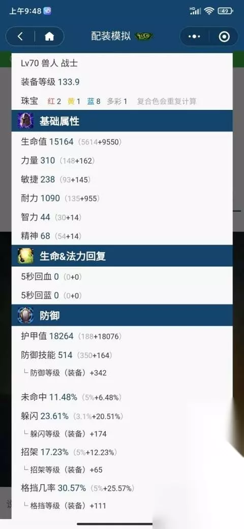 绿字属性加成 这套装备和天赋,满BUFF的情况下,血量可以达到19000-21000。护甲18000,躲闪23%,格挡30%,招架17%。坚如磐石,肉得像盖伦一样。另外战士开BOSS,没有怒气最好先开“血性狂暴”或者喝一瓶“怒气药水”。保证起手就能接到BOSS。战士永远要相信,战士是永远的MT。不是什么熊或者防骑。