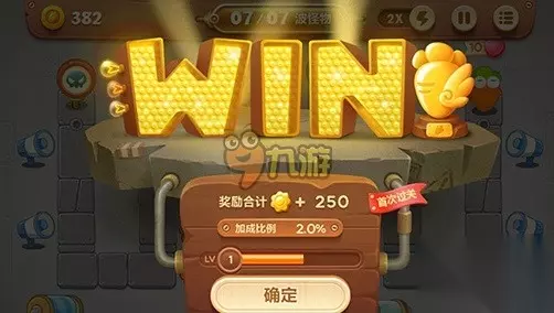 在消灭7波怪物之后,第1关就结束了,最后获得250金币的奖励。