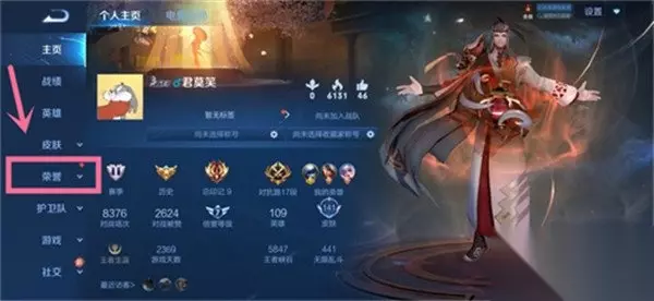 进入头像页面后,大家点击左侧的【荣耀】选项。