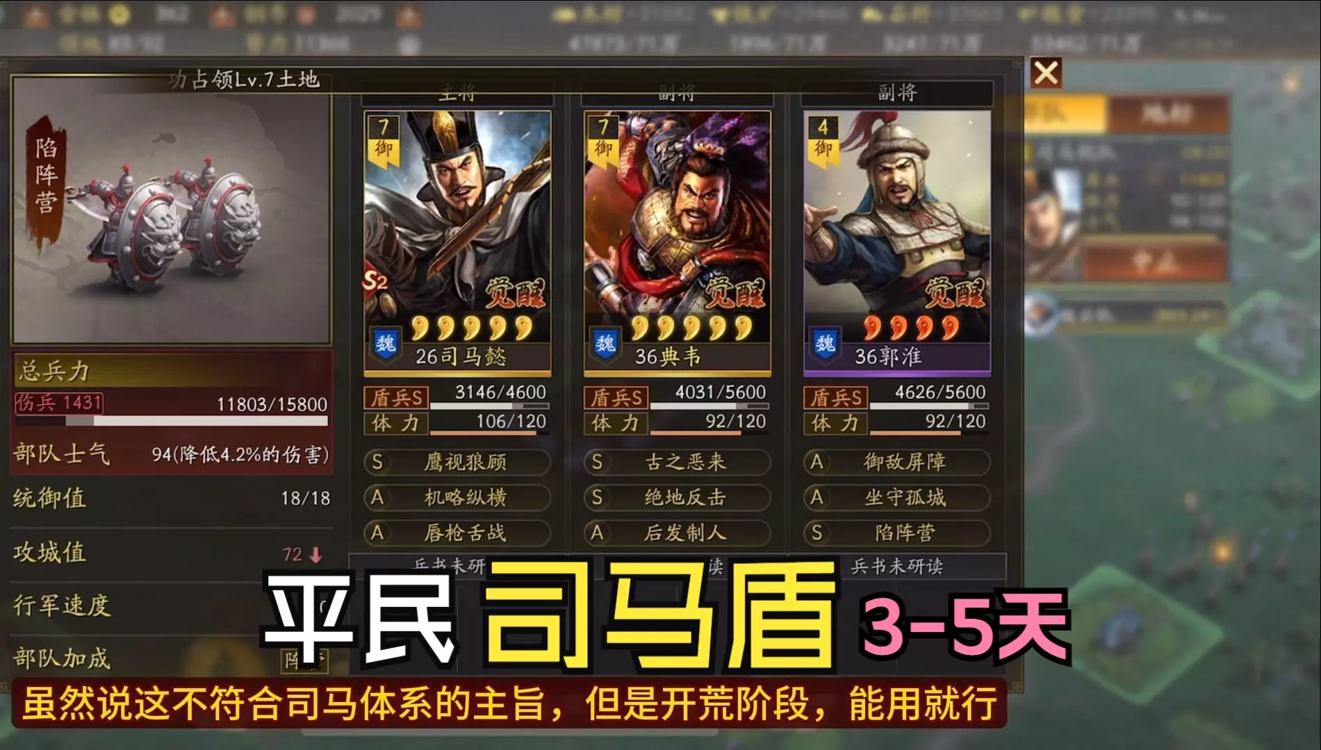 司马懿+郭淮+典韦, 没有士别三日和勇武通神,硬着来!