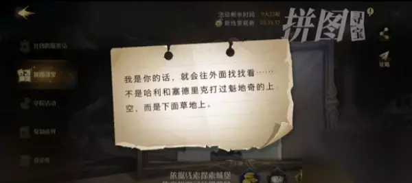 3、拼图信息:我是你的话,就会往外面找找看……不是哈利和塞德里克打过魁地奇的上空,而是下面草地上。