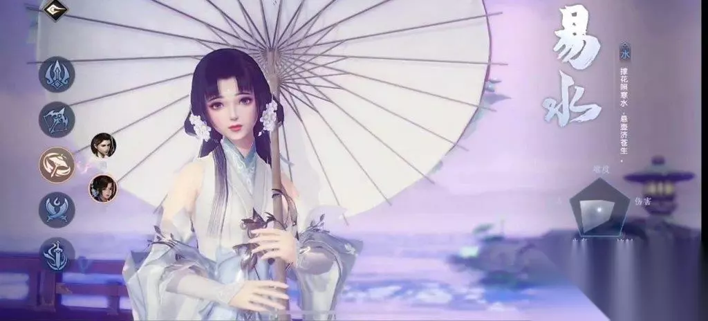 接下来是易水门派,他们的五行属性是水,擅长辅助范围群攻,并且闪避能力很高。易水使用伞作为武器,并且克制天忍门派。易水非常灵活,既可以做范围输出,也可以进行团队治疗。如果你想打输出的话,可以先进入敌方人群中间,打出一套伤害,然后利用1技能和轻功撤离敌方。推荐选择秘籍太玄经、紫霞神功、天山六阳和落英神剑,其中三选一,同时搭配霸王扛鼎、柔中带刚和内息澎湃。而如果你想进行治疗,注意靠近队友使用治疗技能,但要注意走位,避免过于靠前成为攻击目标。推荐选择秘籍逍遥游、洗髓经和凌波微步,其中三选一,同时搭配金刚护体、开天辟地和坐忘无我。