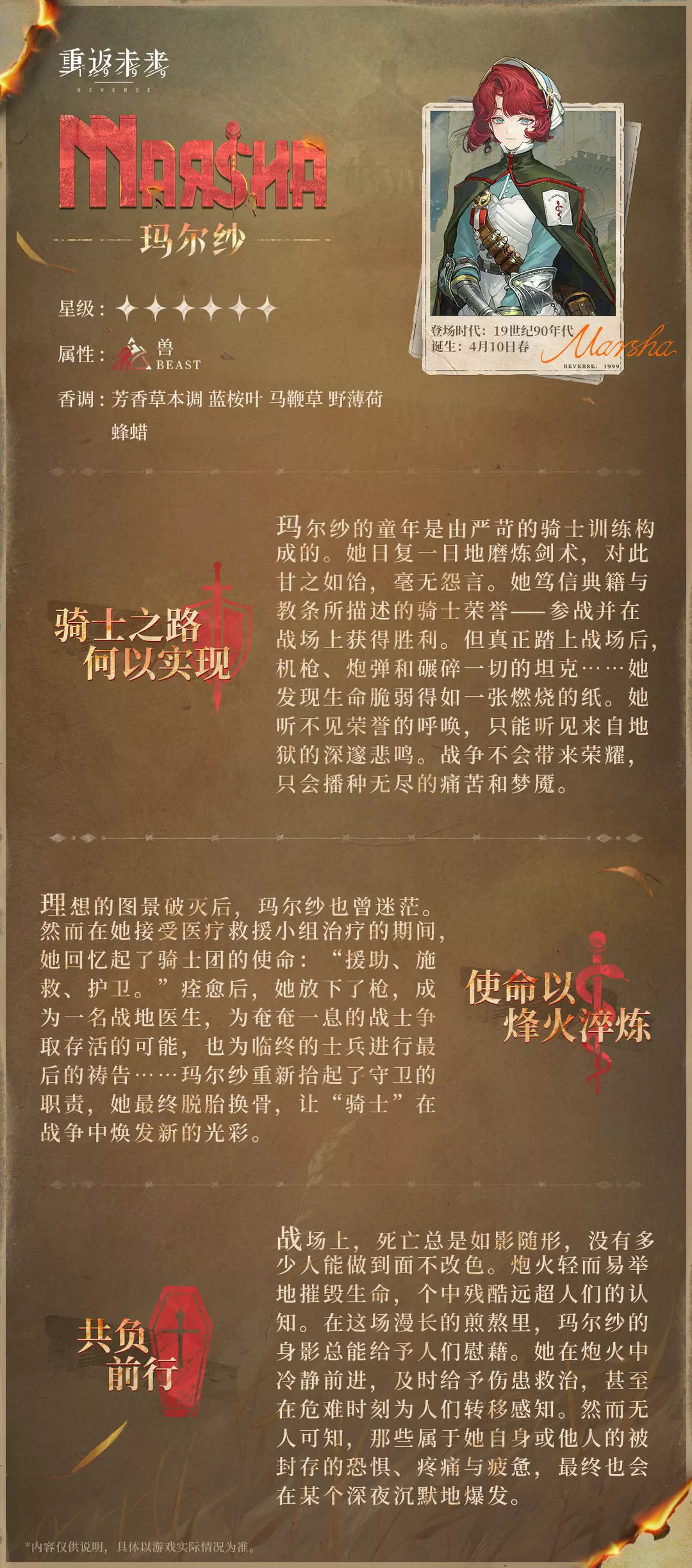 她笃信典籍与教条所描述的骑士荣誉——参战并在战场上获得胜利。但真正踏上战场后,机枪、炮弹和碾碎一切的坦克……她发现生命脆弱得如一张燃烧的纸。她听不见荣誉的呼唤,只能听见来自地狱的深邃悲鸣。战争不会带来荣耀,只会播种无尽的痛苦和梦魇。