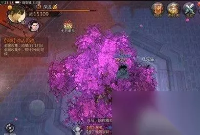6.赏樱,地点在唐门门口的守卫弟子。 要求飞到唐门弟子对面的樱桃树上。