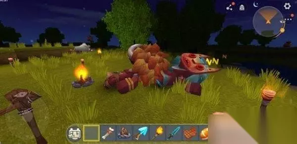 迷你世界怎么驯服野人 驯服野人首要的道具就是篝火,篝火这件道具是通过两个岩石块儿和四个木头来进行合成,属于最初级的合成物品,所需要的的材料也很常见,可以说遍地都是。 篝火用点火器或者火炬就可以点燃,然后在篝火上直接放置生肉静待片刻,等到食物变色后,我们玩家和野人就可以食用了,不过在这里小伙伴们一定要注意烤肉的火候,因为食物一不小心就会被烤焦哦。 接下来就是我们驯服野怪的重要道具:部落图腾了。这件道具可以帮助我们将野人圈在一个范围内不乱跑,合成所需要的材料也非常简单,都是前期能够轻松获得的物品。图腾上的三个动物:猪肘子、油波波、野萌宝代表着玩家们可以驯服的野人种类。 驯服野怪的前置条件就是,地上有食物,旁边有图腾,时间还得是晚上!到了晚上的时候,附近的野人就会被图腾和食物吸引到这里来"跳舞",等他们跳累了之后就会坐下来吃食物,而食物吃完之后,野人们就会陷入"睡眠状态"! 接下来就要拿出我们驯服野人的"法器":巫术骨锤!这件装备的合成稍微有些麻烦,荧光晶体不太好获得。拿出我们的巫术骨锤后,只要轻轻敲击睡梦中的野人就能够驱散他们身上的黑暗诅咒,让他们变成自己的伙伴。 迷你世界野人驯服攻略 1、因为野人是在晚上的时候才会出现,所以我们先要等到晚上,然后将篝火放在地上,用火炬将篝火点燃,点燃篝火后在上面放上生肉进行烧烤。