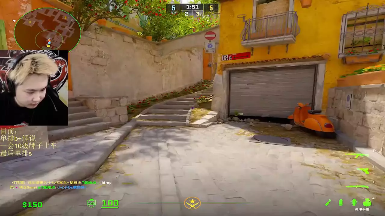 这是一段CS2的游戏直播画面,玩家当前段位为B+,在游戏对局中,这名玩家道具使用频繁,还和队友配合进行点位推进、报点,展现了CS2的对战过程。