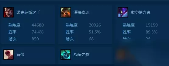 想要玩好一个英雄最快的捷径就是跟着前辈学习,学习他们玩这个英雄的套路,这是让自己进步最快的办法。小编打着要学就跟最强的学的想法,打开了国服诺克萨斯之后熟练度的一位召唤师的资料。可以看到上图,这位前辈的熟练度是44680,胜率74.4%,很强大。 既然决定跟他学习,小编决定先看一下他的天赋页面。