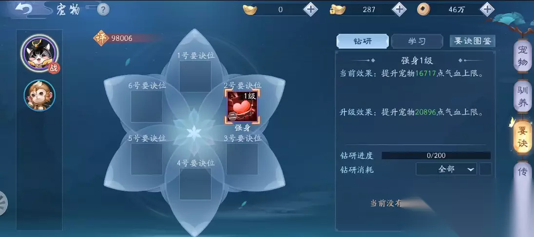 宠物的资质和成长属性同样关键,高品质橙色宠物的基础资质更高,洗髓后可进一步提升上限。洗髓过程中有概率触发变异,变异宠物不仅外观独特,还能获得额外属性加成。通用要诀的搭配也需谨慎,输出型宠物建议优先选择攻击、暴击类要诀,而防御型宠物则更适合格挡、减伤类技能。钻研要诀时需注意资源分配,避免过度消耗洗髓丹和坐忘书。
