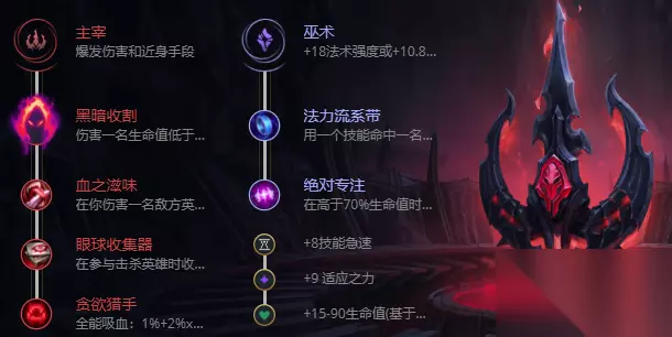 S13英雄联盟布兰德天赋搭配 主系:主宰(黑暗收割、血之滋味、眼球收集器、贪欲猎手) 副系:巫术(法力流系带、绝对专注)