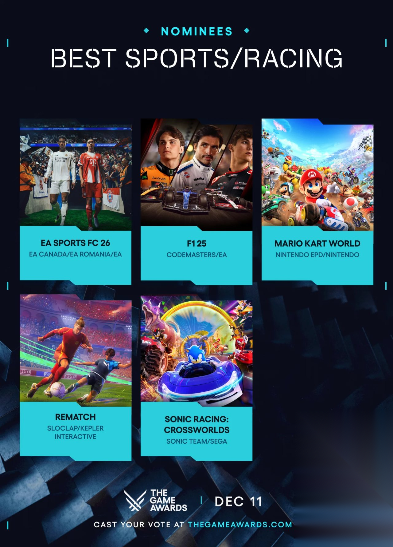 最佳体育/赛车游戏《EA Sports FC 26》《F1 25》《马力欧卡丁车:世界》《开球!Rematch》《索尼克赛车:交叉世界》