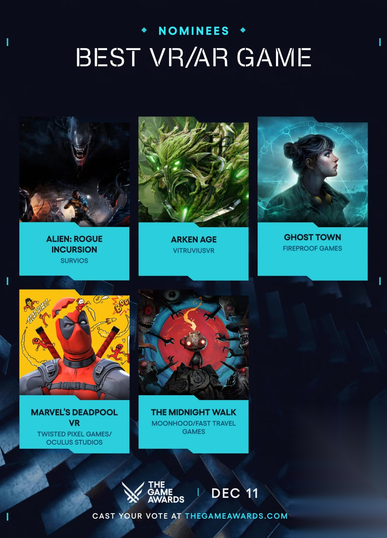 最佳VR/AR游戏《异形:盗贼入侵》《阿肯时代》《怪镇奇旅》《漫威死侍VR》《午夜漫步》