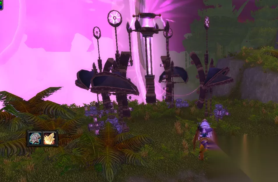 重要的诊断/苏瑟伦生态圆顶发生器坐标 在下面的地方我们可以看到一堆机器在防护罩的附近。 我们需要走到附近才能够完成任务。