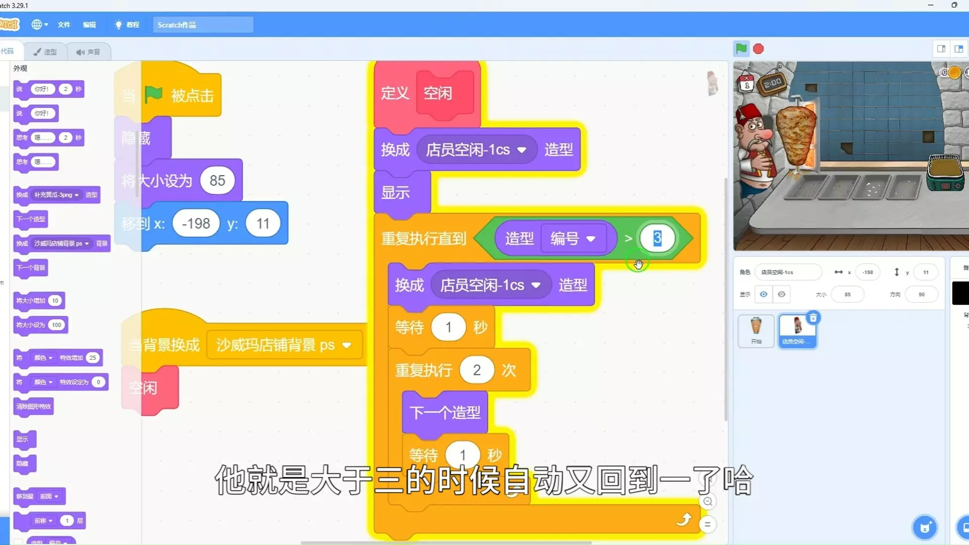 scratch少儿编程高度还原沙威玛传奇游戏之补充黄瓜和奶酪