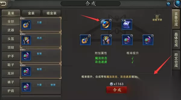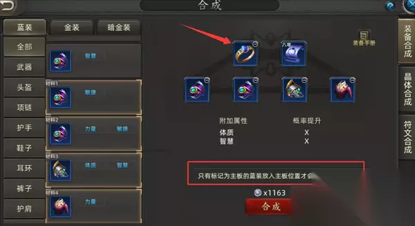 诺亚传说口袋版游戏里通过装备合成玩法可以得到更厉害的装备,这些装备不仅可以用来提升自身的实力还可以卖出去赚钱,掌握装备合成及交易的技巧就可以赚取到不少,以下是技巧分享。 诺亚传说口袋版合装备赚银币解析 蓝装合成金装 口袋版的蓝装合成,对比诺亚的端游简单了太多太多了,完全就不需要考虑词条的出现次数,直接把你想要的词条装备放主板上就行了,而且口袋版没有废词条,合出来的装备基本上都能用。 但是需要注意:主板装备左上角一定要带材料标识,这样的装备放在主板上面,才有概率提升。
