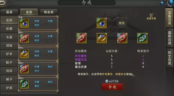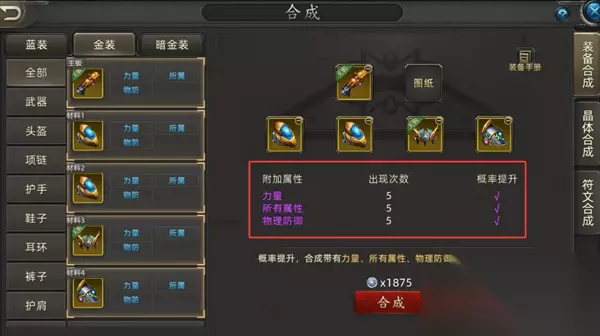 如果不带材料标识的蓝装,放上去合成,这些词条是完全随机的呢。但是如果你哪天发现图纸价格非常便宜,也可以用这个方法合成。