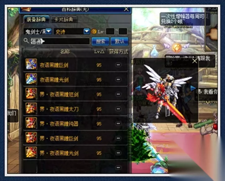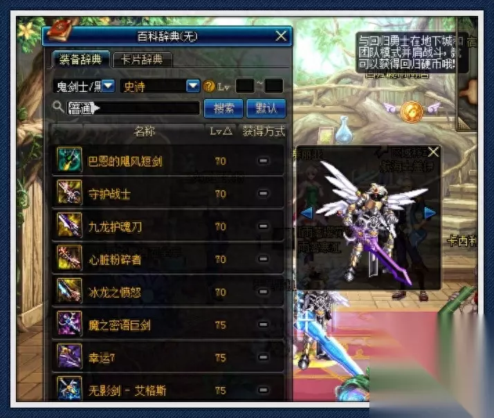 明光追影刀曾经火过一段时间,但外观跟灵跃武器差不多,谈不上帅气。不过,每个人的审美观点不同,在一些玩家眼中,明光追影刀独特帅气。这把武器十分稀少,专属APC“雷剑爱利撒”掉落,当初因属性强势,备受鬼剑士职业青睐,然而,拥有的并不多。同理,没有绝版,灵魂武器礼盒开不出来。