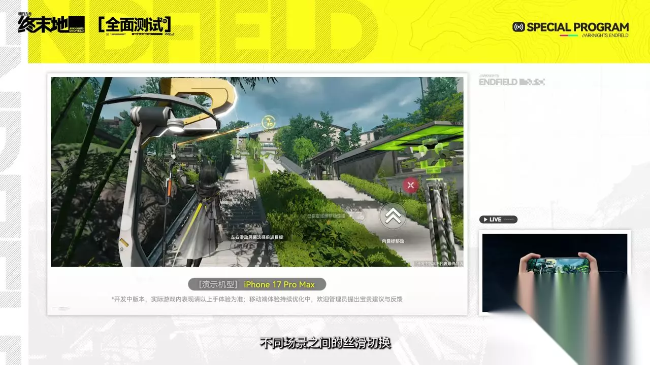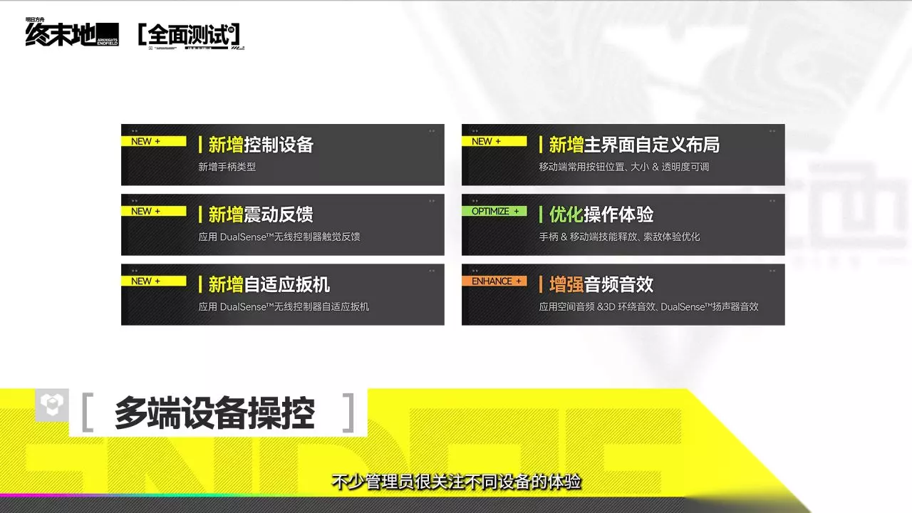 在今日的「全面测试」前瞻特别节目中,鹰角网络宣布《明日方舟:终末地》将于11月28日在Android、iOS、PC平台上开启全面测试!本次全面测试为限量计费删档测试,测试期间将开启付费功能。全面测试几乎重制了所有的剧情演出和对白动画,增加拍照、队友指引、宝箱探测器、共享设备功能。