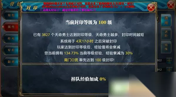 卡经验是什么? 其实大家在玩御龙在天游戏的时候肯定都想着一定要多多参加活动,这样才可以赚取经验,然后快快升级。等级越高代表玩家自己在游戏中战力越强,威望也会越高。但是御龙在天手游后期的升级会越来越慢,不仅仅是经验值需求越来越大,还有就是等级封印的时候经验只有一半。 怎么卡经验? 在系统封印时,处于封印期的玩家不能继续升级,但是经验可以继续累积,一旦破封后就能直接升级。但是管经验时只能有50%的经验,第二管30%,第三管10%,经验越多能获得的经验就越少,所以一旦破封后是不可能跟其余玩家拉开很大差距的。