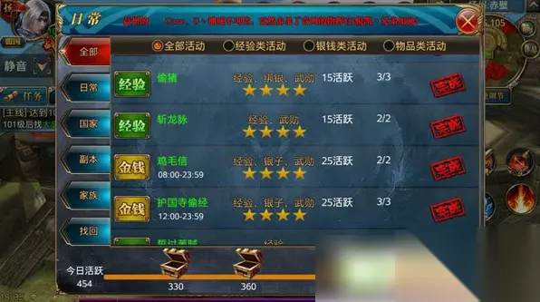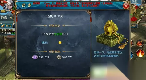 那么在封印期间,玩家们的经验类任务就可以不用太过认真地完成,诸如拉车、偷书等任务也不用要求太高。当然,一点经验也是差距,有心的玩家还是可以跟往常一样做任务,懒一点的玩家也可以第二天直接100%找回,反正差距不会特别大。至于物品类任务,还是建议继续去做,比如斩龙脉、皇榜等任务,毕竟可以获得马匹和换镖令等东西,并且是不能找回的。总体来说,封印期间玩家们会轻松很多,只要花点时间去拿点道具就可以了。