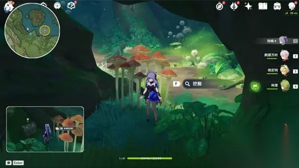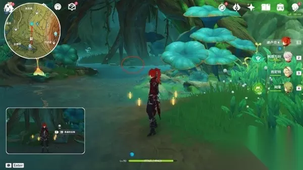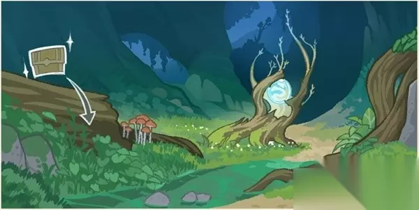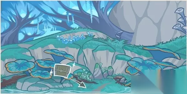 位置:在地下,需要先完成世界任务【水天供书】,解锁法留纳神机的地下人口,在传送点旁边,这个树干旁的蘑菇处,点调查。