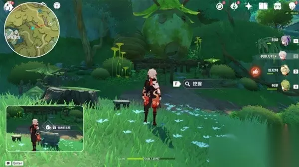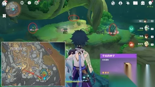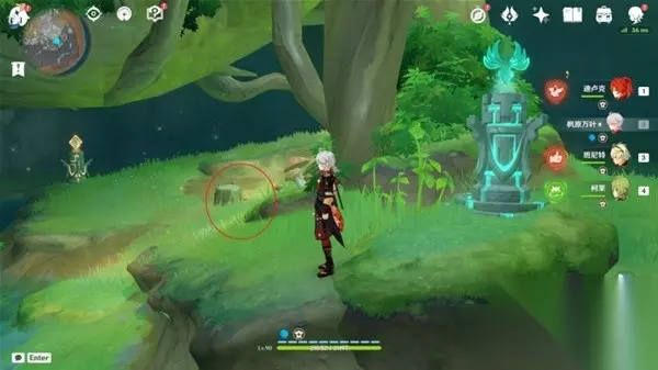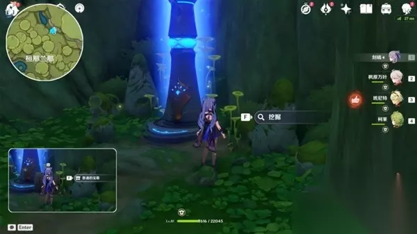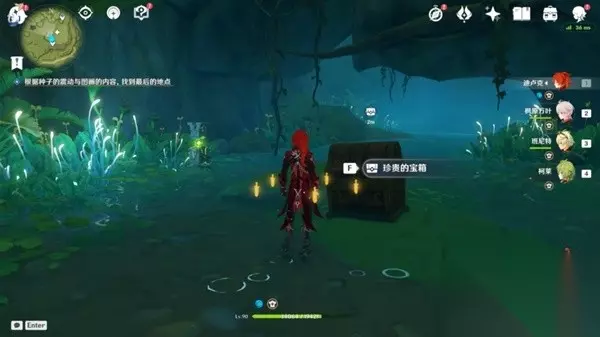 2.向右拉视角,往小地图北方向走,在「修梨薛那」前,弹奏「大梦的曲调」,回到现实!梦境挖不出宝箱!(做「梦中的苗圃」的任务时,跟剧情调到了梦境!)