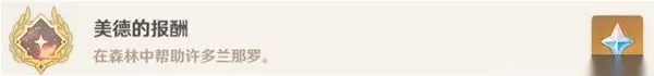 在草元素方碑的东南方向(同一层),对幽闭花弹琴(需解锁曲调【揭示兽径的曲调】) 出现洞口往里走,和过完剧情,发现无法开启宝箱,和精灵对话,需要帮助一定数量的兰那罗,即可开启了。开启后获得隐藏成就:美德的报酬! 共13个宝箱(7普通+2精致+3珍贵+1华丽)