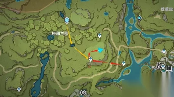位置:在地下,恒那兰那右边的3个传送点中间的地下空间,兰那罗处,需点亮3个中的左下方地下传送点。 开启上面9个宝箱后,自动接取【世界任务:静态风景 · 后篇】,从恒那兰那东南方向地下传送点进来(从它的右边传送点过来,在箭头处的洞口进来即可解锁),需要清除死域放水。
