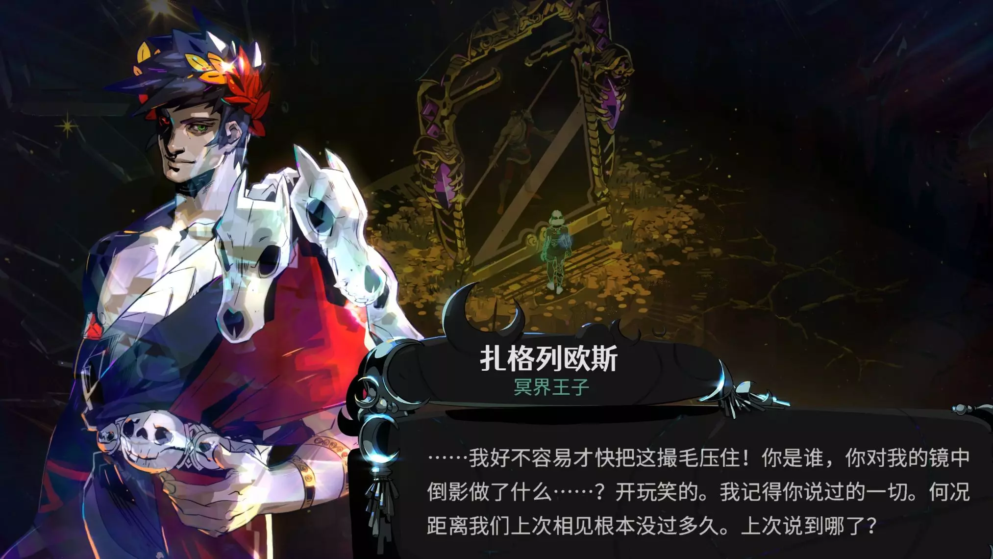 这是游戏《Hades》的剧情内容,扎格列欧斯得知是倪克斯在自己出生时救了自己并赐予生命,向倪克斯询问缘由,倪克斯少见冷脸,还质问扎格列欧斯准备勾搭多少自己的孩子。