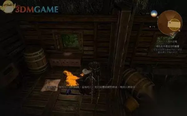 在床上有本泛黄的日记,在物品栏里的任务道具里阅读它,得知一对夫妻遭受领主的压迫,他们反抗获得自由迁居此地。尽管家徒四壁,丈夫仍给妻子买了一只手镯,他妻子很喜欢。