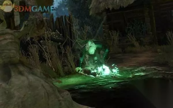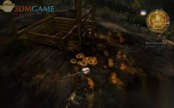 按照欧朵兰的提示,前往荒废村庄。在庭院里就是那口水井,先用狩魔猎人的感官能力调查井边的草,有烧灼的痕迹。附近还有一具狗尸,同样有烧伤的迹象。