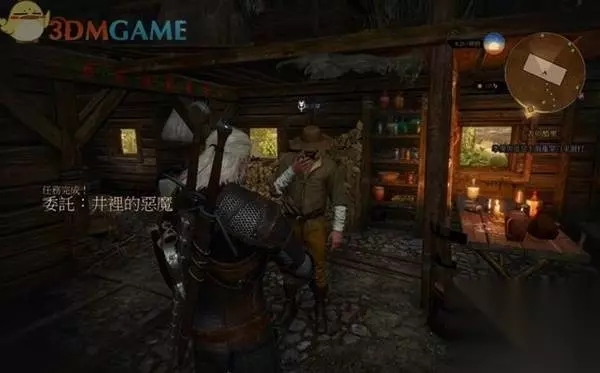 接到任务后,前去找委托人欧朵兰询问事情缘由。他说那座井闹鬼已有20年的光景了,此前村人都是喝的河水,所以水井的事都没在意。如今战事一起,尸体遍野,将河水都污染了,只有喝那井水。她女儿不过喝了半壶的井水就病重,每况愈下。 所以他委托杰洛特将水井中的鬼赶走,这样女儿喝到干净的水,病也会好起来。