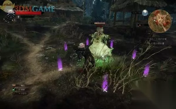 打开怪物图鉴,阅读“井里的恶魔”和“日间妖灵”条目,得知日间妖灵只在中午时分出现,它会制造出镜象,人类完全攻击不到它的实体,狩魔猎人不光要用银剑,还要用亚登之印逼它现出原形。 和这种怪物作战,要装备亚登之印和银剑外,最好还要在剑上涂上恶灵油来增加威力。
