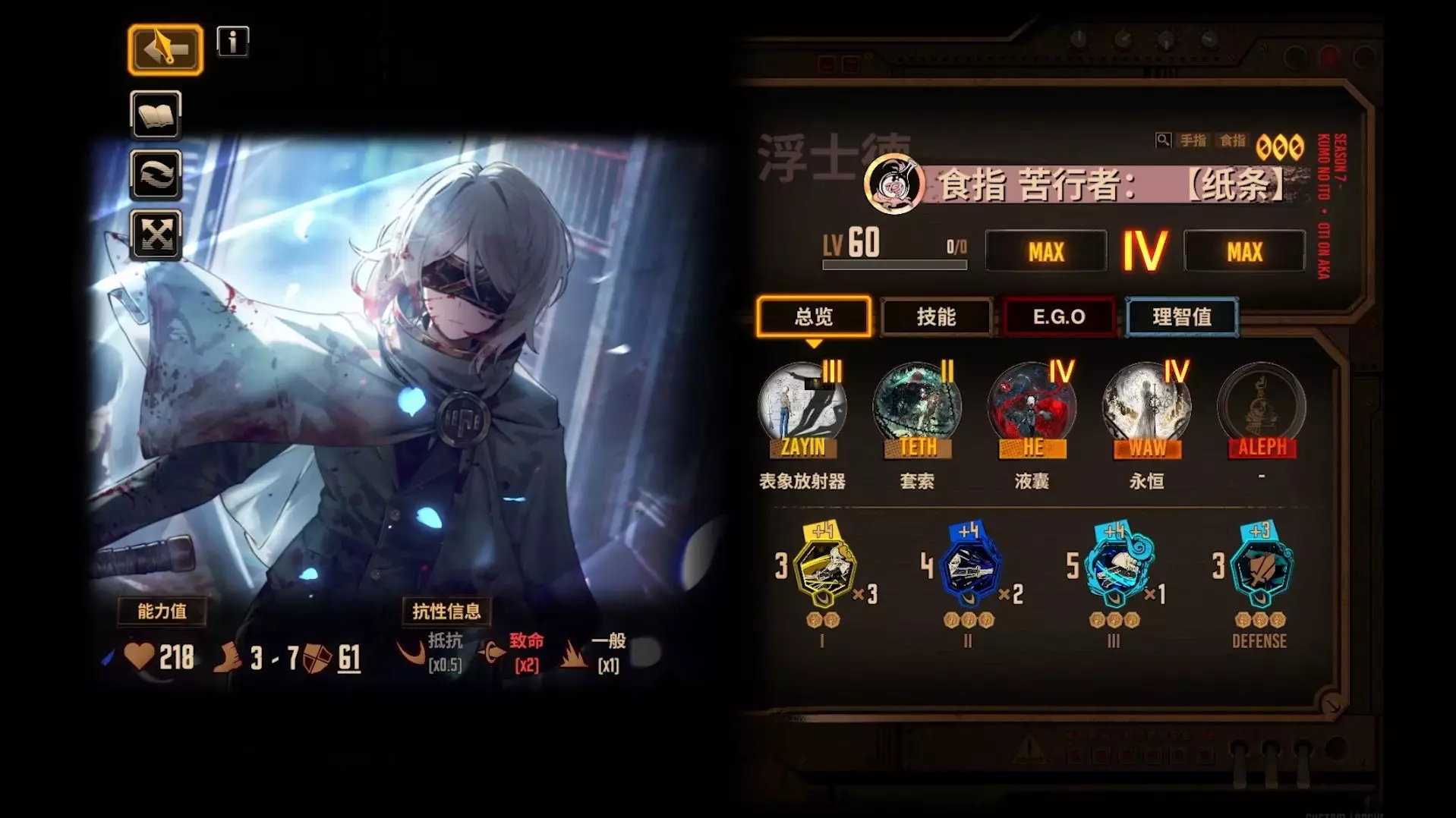 另外可以每场战斗开局就让初始罗佳或者你有其他增伤被动人格(例如 豆豆宝 w箱 死协小唐) 可以开局用他们拼点被打死获得资源以及被动() 如果有EGO可以帮助子路…