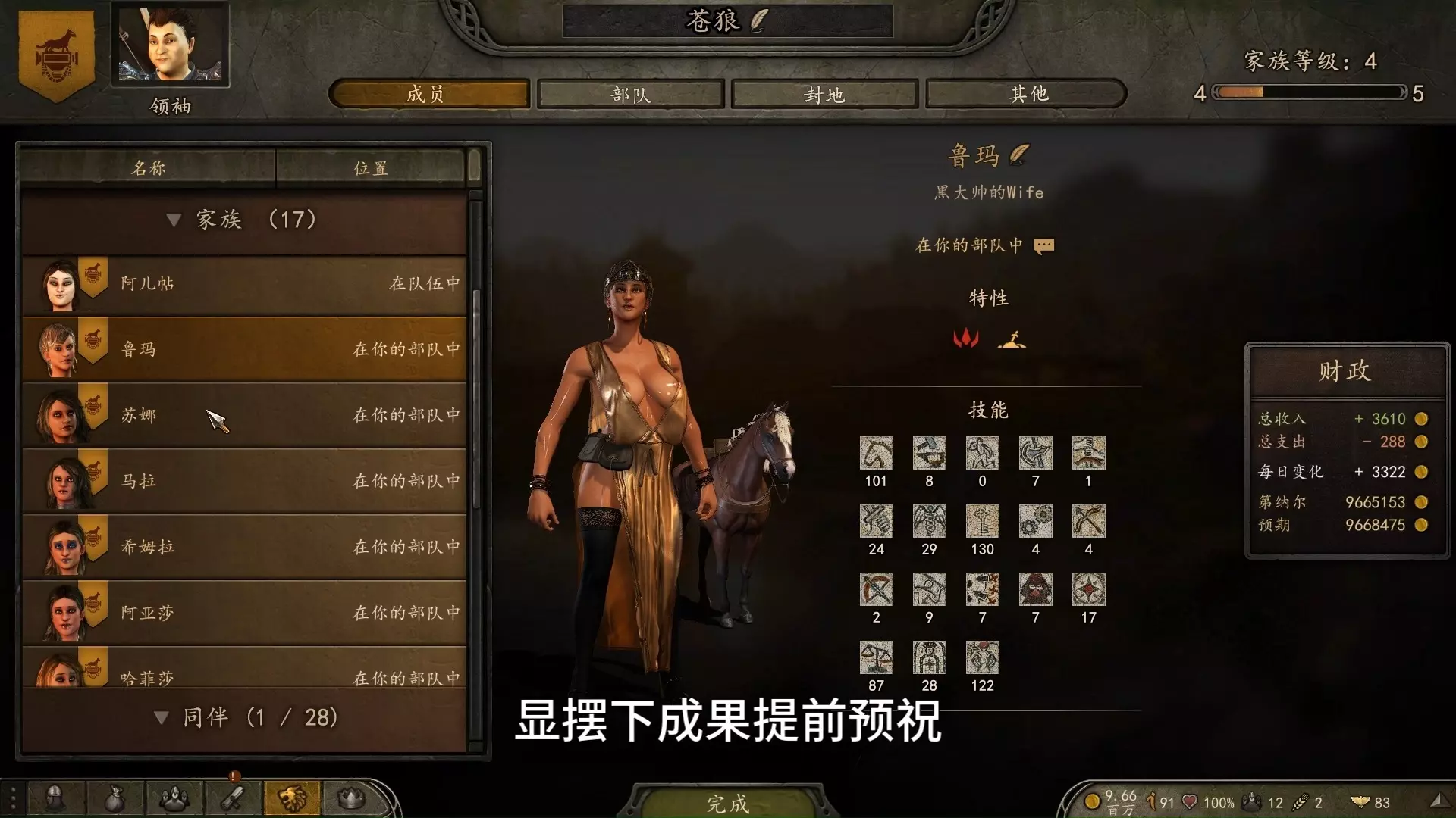 捏脸数据: <BodyProperties version="4" age="25.84" weight="0.5" build="0.5" key="0000040013B43006128317117111116680F68735607DA402BDF6C6307C530016FD1906130AB061130044000085F030350000000000001A770000000041441003" /> 参考文献: https://www.nexusmods.com/mountandblade2bannerlord/images/18 https://bbs.mountblade.com.cn/forum.php?mod=viewthread&tid=2073032&extra=page%3D1%26filter%3Dtypeid%26typeid%3D896 详细的角色创建mod: https://www.nexusmods.com/mountandblade2bannerlord/mods/118
