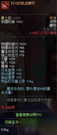 时光的轨迹长靴属性 DNF90SS轻甲属性