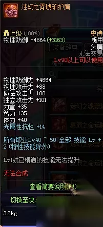 迷幻之雾琥珀护肩属性