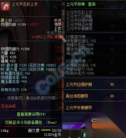 永恒蔑视长靴属性 上元节祭典套装属性