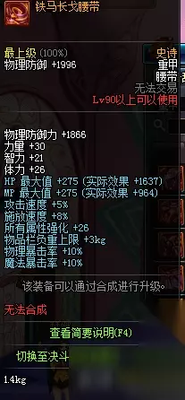 铁马长戈战靴属性 DNF90SS板甲属性