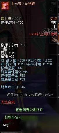 上元节之花绣鞋属性 DNF90SS皮甲属性