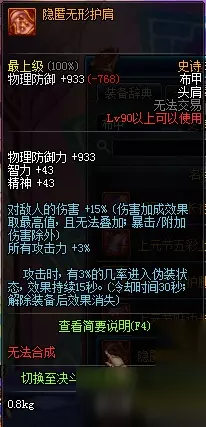 隐匿无形护肩属性