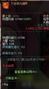 万世荣光战靴属性 DNF90SS重甲属性