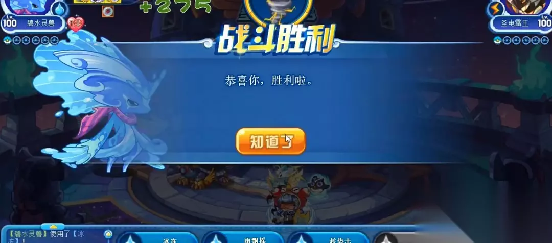 只要避开对方的 6强化的雷切,基本上过boss就没有问题,使用冰冻、雨飘摇、水灵动来轮流使用,当boss只有1000多滴血,可以使用趁势击、水灵动、冰冻的连环输出结束战斗。