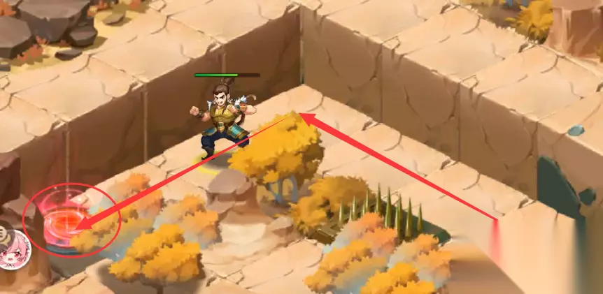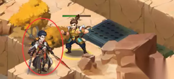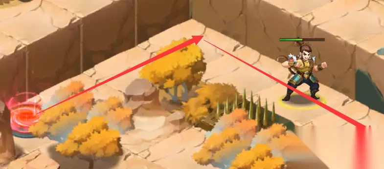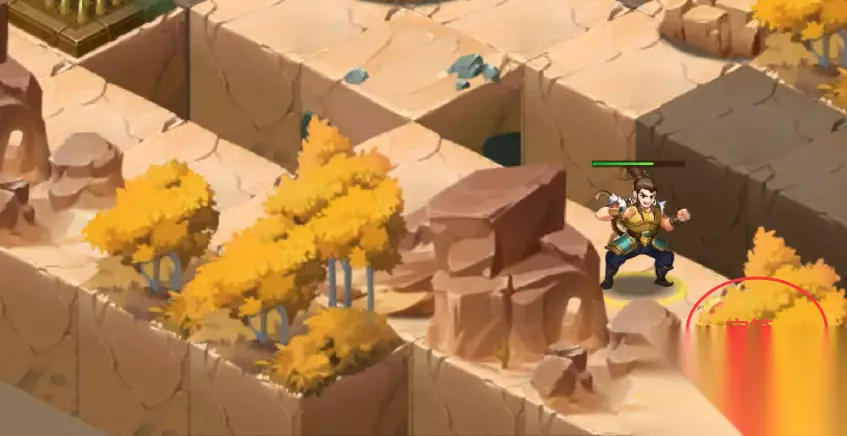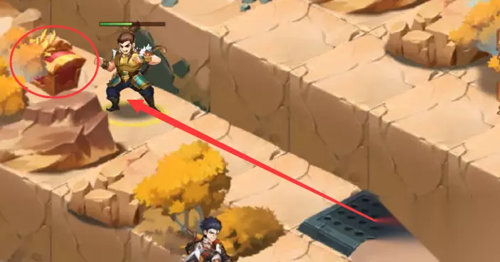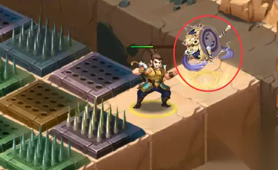 34、传送后,往前走转弯走过陷进走转弯,去找NPC凌统,和NPC凌统对话走完剧情后,就能在尖刺陷阱丛林中看到我们本章宝物:鸣擂鼓(这时候还拿不到,需要回到中心地块去操作机关)