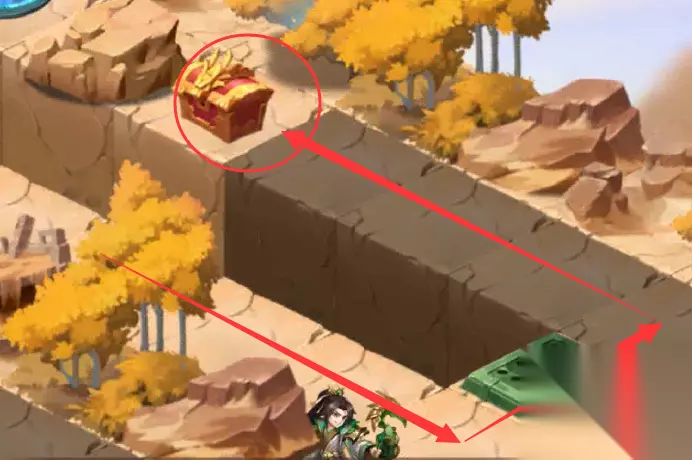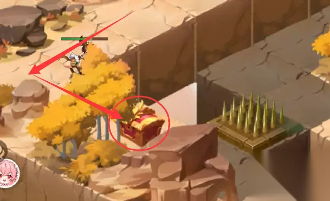 3、传送到中间多机关处,在这个上角处拿第1个宝箱
