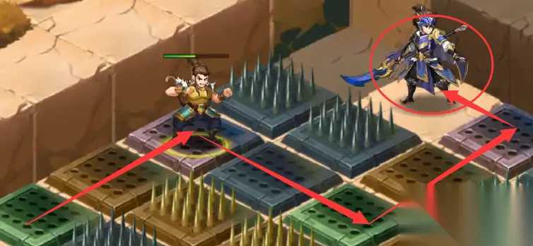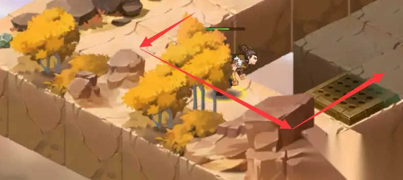 4、操纵边上4个机关,操纵杆方向分别为“1上,2下,3下,4上”(可以关闭地图左侧边缘的尖刺陷阱)
