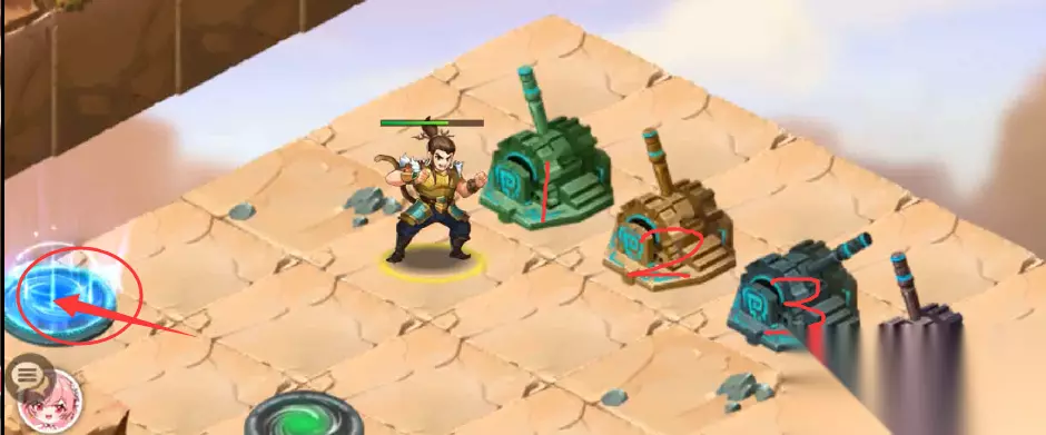 本章宝物:鸣擂鼓 本章宝箱数量:11个 通关宝典:注意地图中心4个机关的操纵杆方向,初始方向为“1下,2下,3下,4下”(如下图所示)