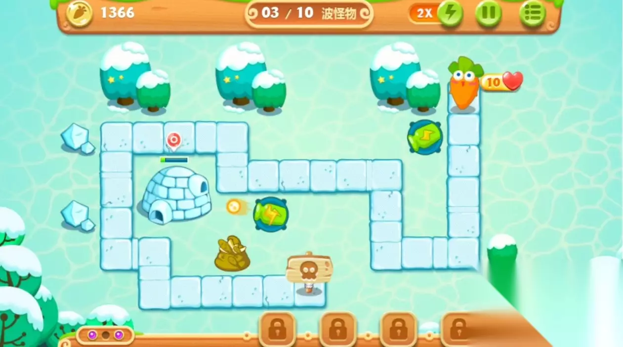 保卫萝卜2第30关攻略 及时升级防御塔:随着游戏的进行,搜集充足的资源及时升级防御塔,提高攻击力和攻击范围。运用道具和技能:合理使用游戏中提供的道具与技能,如冷冻敌人或增强防御塔的攻击,以关键时刻扭转战局。提升防线布局:如果碰到困难,试着调节防御塔的位置或更换防御塔类型,找到适合现阶段战况的布局。维持注意力集中:在游戏过程中,高度关注敌人动态和数量变化,结合实际情况适时调整策略。