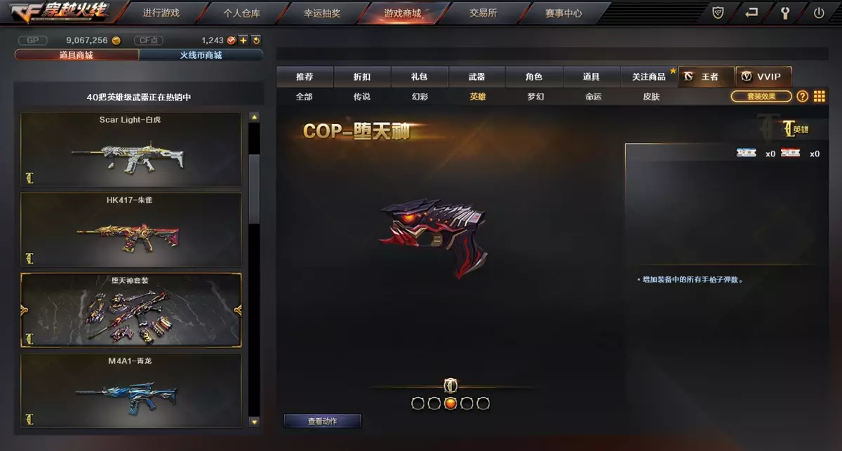 TOP 3 COP 堕天使 COP是一款非常好用的手枪,早期曾有玩家拿COP去打生化,拿到的分数也是不低的,所以由此可见COP的伤害还是非常可观的,COP堕天使作为COP中的英雄级武器肯定是不能错过的,堕天使不仅好看,而且还是非常实用的。