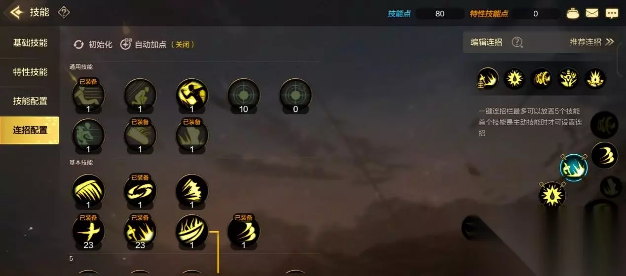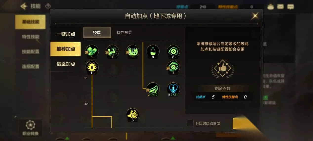 技能加点方面,先点系统中的推荐加点,再根据个人喜好进行分配调整。 因为推荐加点是自动加满转职后的所有技能,对转职前的小技能则会随机点满。而狂战士转职后的技能本来就是要全部加满的,是伤害的主要来源。 小技能调整方面,个人推荐、崩山击、十字光刃、物理暴击点满,三段斩、裂影破动剑、银光落刃至少点一。 崩山击、十字光刃在狂战士的被动狂气的加持下,输出占比非常高。银光落刃、三段斩、裂影破动剑、则用来连招、走位和无敌。